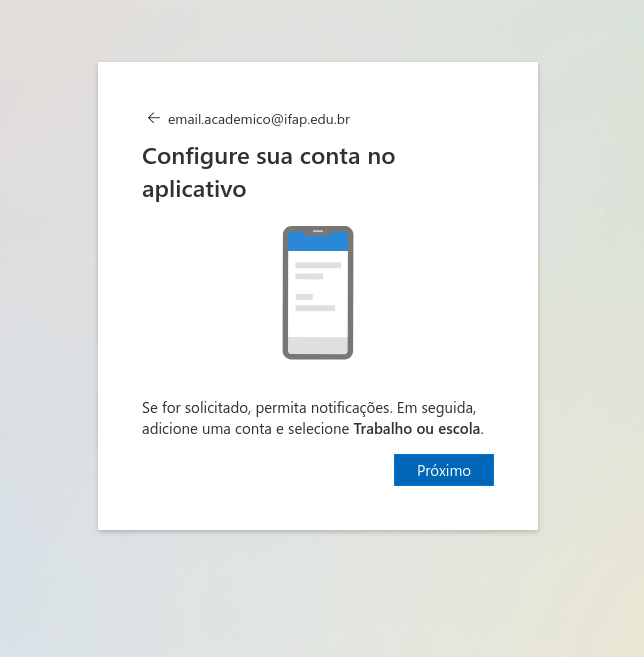 Recomendamos que você entre com alguma outra conta Microsoft no aplicativo Microsoft Authenticator para evitar você perder o acesso quando trocar de celular ou semelhante. Após isso, clique em "Próximo".