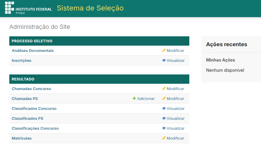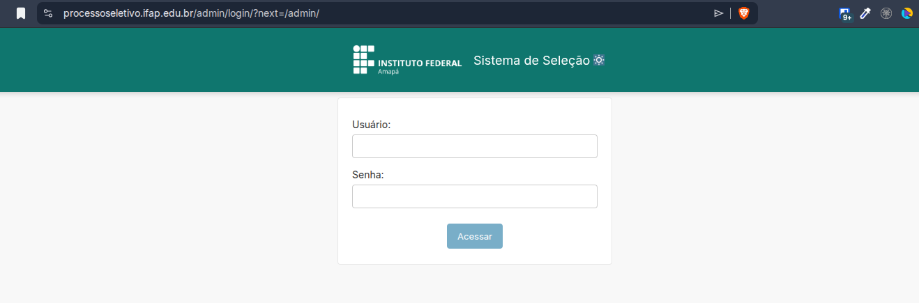 1) Acessar o sistema https://processoseletivo.ifap.edu.br/admin