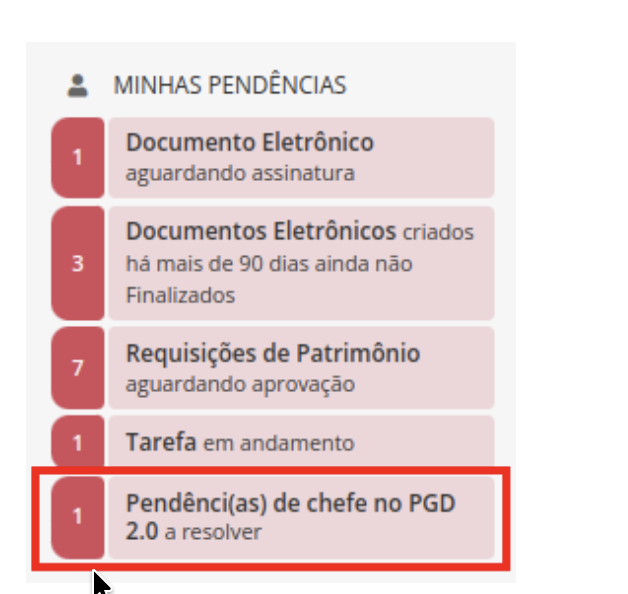 Neste caso, a chefia verá a tela de suas pendências do PGD como chefe.