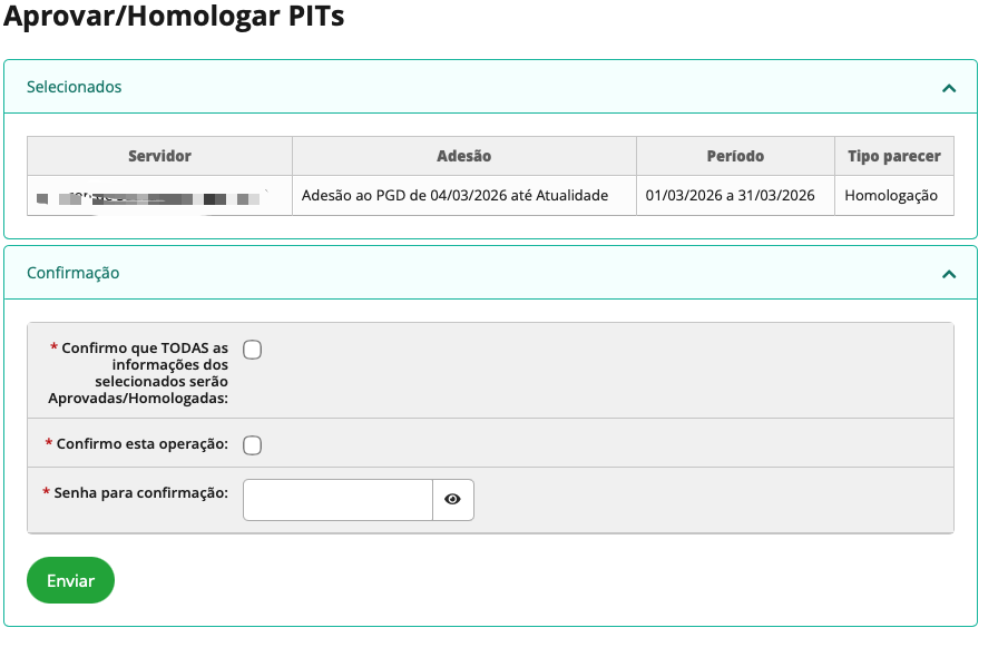 Após o servidor cadastrar seu Plano Individual de Trabalho (PIT), ele deverá ser analisado pela chefia imediata para aprovação ou homologação.