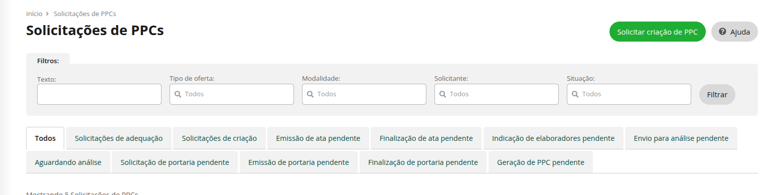Solicitações de PPC