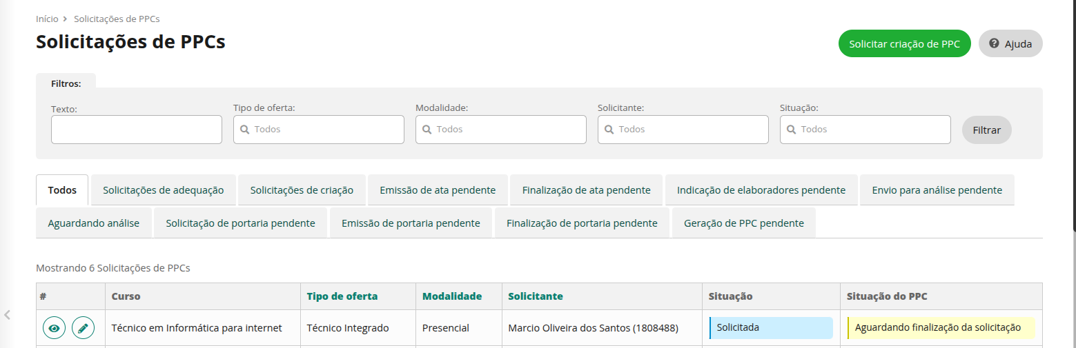 # Clicar no botão solicitar criação de PPC