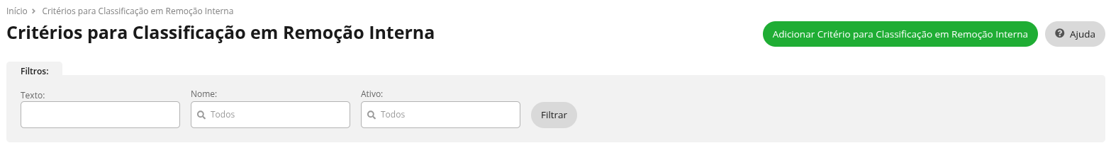 Em seguida, clique no botão "Adicionar Critério para Classificação em Remoção Interna".